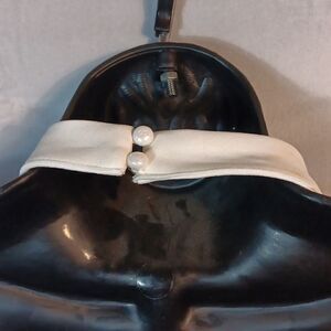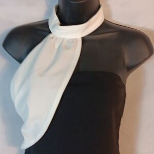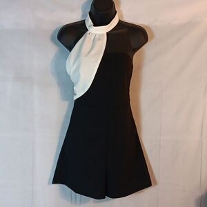 This black and white one piece short jumpsuit is a size Small (4) with a pit to pit measuring 15" a waist of 14" and an inseam of 3.5". Double buttons in back. In excellent condition.