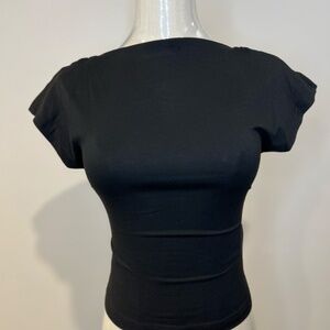 🖤 Black Wide Back Dip Deep Plunging Short Sleeve Stretchy Cute Shirt Summer