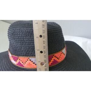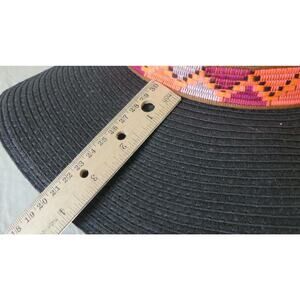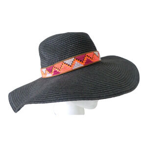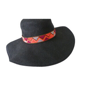 Black Wide Brim Summer Hat Colorful Woven Band Southwest Boho Festival Beach