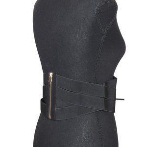 Black Wide Corset Wide Waist Corset Cinch Belt Leather Gold Metal Zipper