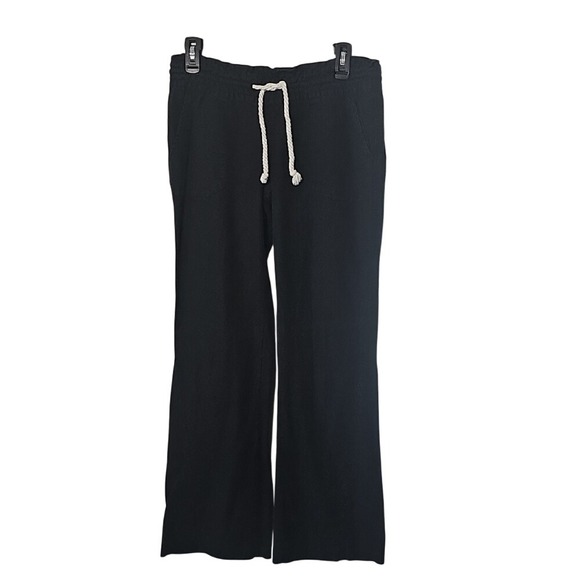 Black Wide Leg Casual Pant With Rope Drawstring Size Small Womens