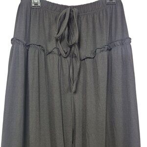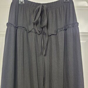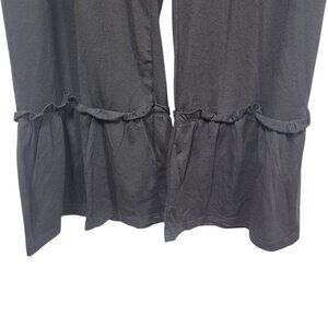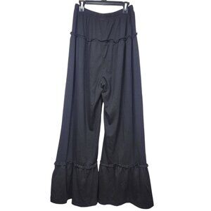 Black Wide Leg Ruffle Hem Palazzo Pants Size M Elastic Waist Lounge Fit