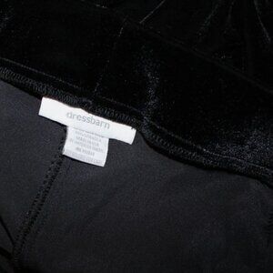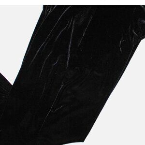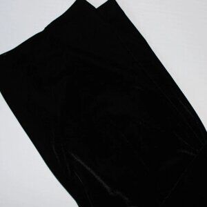 Dress Barn black velour wide leg pants with size zipper and elastic in back of the waist band. Size 14, waist is 34", hip is 40", rise is 13", inseam is 32 1/2", length is 45". Fabric is 90% polyester, 10% spandex. In excellent gently worn condition.