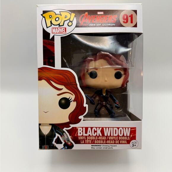 Funko Pop Marvel Avengers Age of Ultron Black Widow #91. This Pop features Natasha Romanoff in her Age of Ultron suit from the early Marvel Cinematic Universe era and is a solid addition for MCU collectors building out the original Avengers lineup.