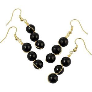 Black Wire Wrapped Triple Ball Beaded Dangle DropTrendy Hook Earrings for Ladies