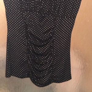 This is a pretty top that you can wear for work or you can make it into a great after work top with some jeans to grab a drink! The fabric is silky and soft, it feels amazing when you put it on. I really love the unique ruching down the mid front coming off the pleats at the top of the shirt. It really helps to hide a belly too! It’s in EUC no fading, tears, holes, etc. Any ❓❓please ask I am happy to answer anything I can!