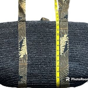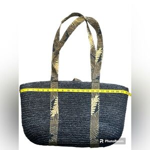 Black With Tropical Print Large Straw Beach/Summer Tote Bag