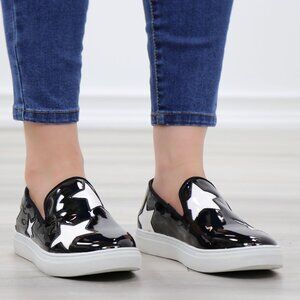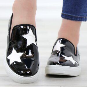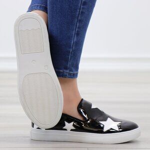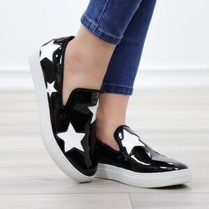Black With White Stars Patent Sneakers Shoes
