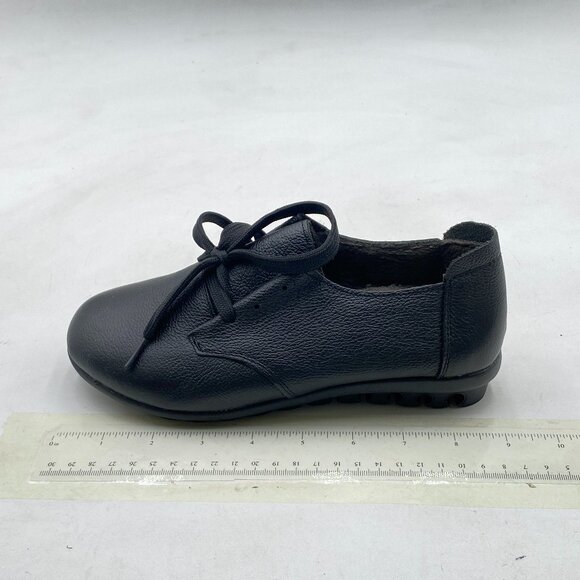 Black Women Ballet Round Toe Lace Up Comfort Loafer Slip On Formal Casual Shoes