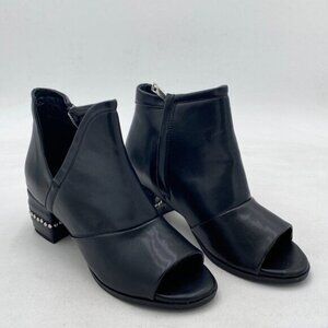 Black Women Chic Peep Toe Stiletto High Heel Short Booties Cutout Slingback Side Zippers Walking Shoes