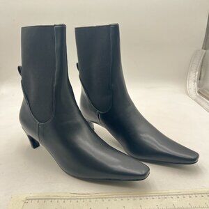Black Women Low Heels Ankle Boots Closed Toe Stretch Pull On Winter Booties