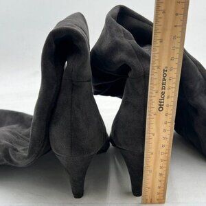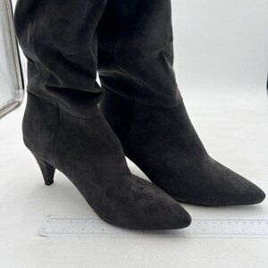 Black Women Over The Knee Boots Comfy Wrinkled Medium Chunky Heel Closed Point Toe Classic Pull On Business Shoes