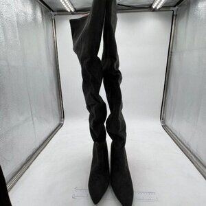 Black Women Over The Knee Boots Comfy Wrinkled Medium Chunky Heel Closed Toe