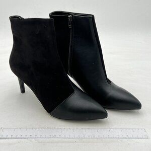 Black Women Fashion Pointed Toe Ankle Booties High Heel Leather & Suede Office Lady Shoes
