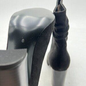 Black Women Pull on Booties Chunky Heel Slouch Ankle Boots Round Toe Stacked