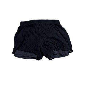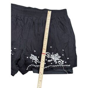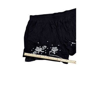 Black Womens Embroidered Shorts With Elastic Waist & Floral Design