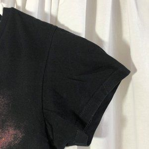 You are Purchasing A Black Women's Iron Man T-Shirt Size Medium. This shirt is ver comfortable. Perfect for those people who are fans of the Marvel Cinematic Universe. There are some loose threads in the back of the shirt and some on the sleeves but not too noticeable (See Pictures).