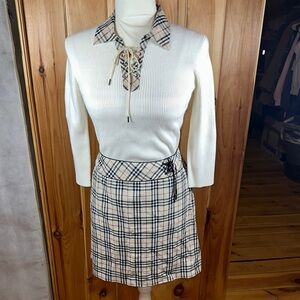 🦊Three pieces, Tops long sleeve, plaid skirt, Denim Jacket🐶