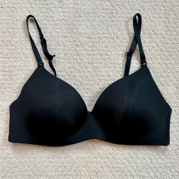 Experience comfort and style with this black nursing bra, perfect for everyday wear. I think it’s a 34B. Has a clip in the back to pull straps together