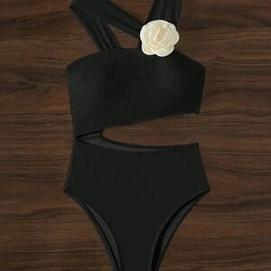 Black Women's One-Piece Swimsuit With Hollow Out Design