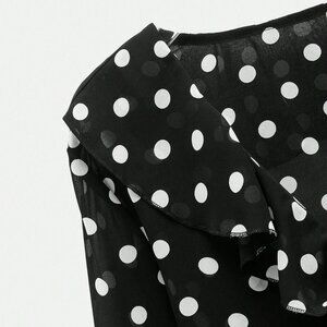Black Women's Polka Dot Print Design Front Bow Tie Ruffle details blouse