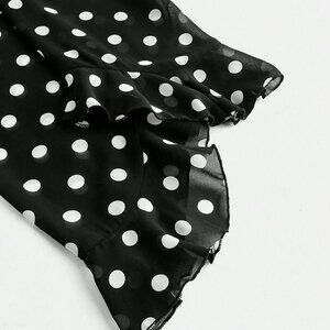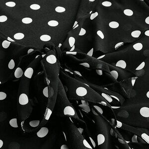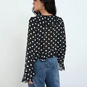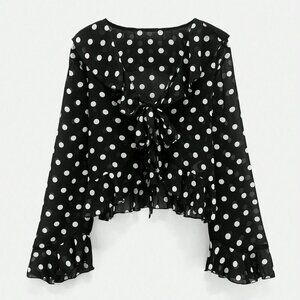 Black Women's Polka Dot Print Design Front Bow Tie Ruffle details blouse