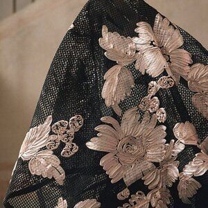 Black Women's Romantic Elegant Floral Embroidery Semi-Sheer Casual Blouse