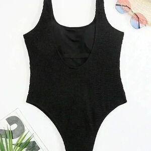 Black Women's Solid Color Sport One Piece Swimsuit Candy Color Textured Fabric