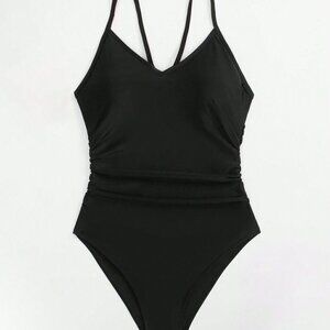 Black Women's Summer Beach Cut Out Ring Linked One Piece Swimsuit