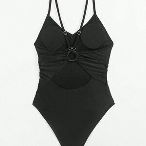 Black Women's Summer Beach Cut Out Ring Linked One Piece Swimsuit