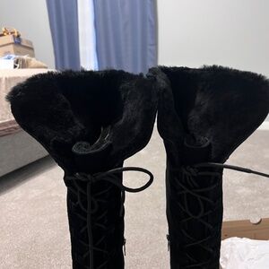 Black Womens UGG CLASSIC FEMME OTK LACE BLACK OVER THE KNEE WEDGE BOOTS
