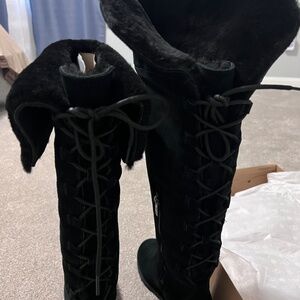 In excellent, barely used condition, worn a couple of times. See photos. Comes in original box and all the packaging. Smoke free and Pet-free home. I typically wear 7.5 in boots, but this particular model runs 1/2 to full size smaller, so it's best for a 7.5 to 8 size feet. It gives me plenty of room to wear additional socks if desired, but since the inside is lined with real wool/fur, additional socks may not be needed. It provides great warmth.