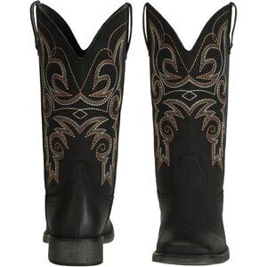 PREMIUM EMBROIDERY: These cowgirl boots with classic western embroidery on shaft and foot. White stitching accents the black faux leather upper, adds uniqueness and fashion of the western boot