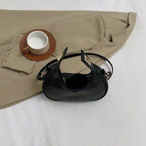 Black Women's Zipper Closure Faux Leather Woven Handbag