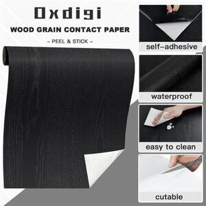 Black Wood Contact Paper - 23.6 x 196 Inches - Self-Adhesive, Removable