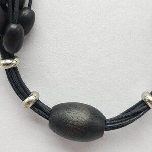 Black Wooden Bead Multi Strand Necklace With Silver Tone Accents