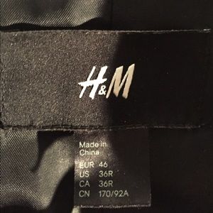 NEVER WORN, H&M charcoal gray/black blazer with leather detail on trim and elbows. Very stylish- can be mix and matched with dress pants or with jeans.