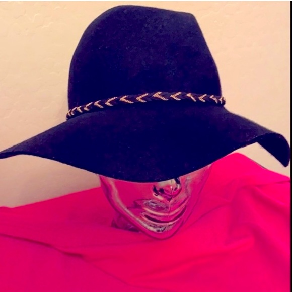 A Classic! Wear with so many outfits! Black Wool Rancher hat with Super Cool Black & Gold Chain Link Crisscrossing Band. Wide Floppy Brim. Great fit for those with Medium to Large Heads. 100% Wool. Excellent Used Condition. Worn a few times. Looks Brand New! No Trades. See Other Cool Hats in My Closet. 😎