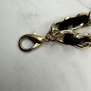 - Black woven ribbon and gold tone metal