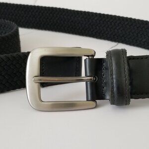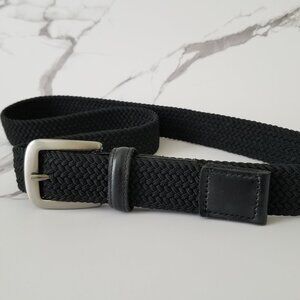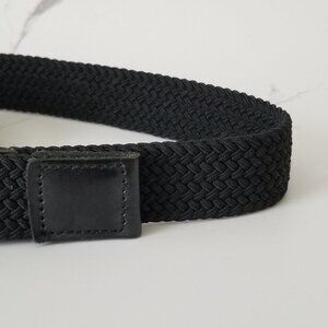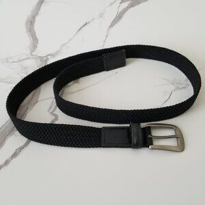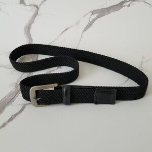 Black Woven Fabric Belt with Brushed Nickel Buckle & Faux Leather Tabs - 34/36