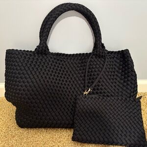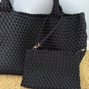 @naiomi56 tote 21 in L x 12 in H, small pouch 9.5 in L x 6.5 in W