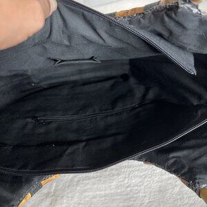 Black Woven Tote With Bamboo Handles & Colorful Embellishments