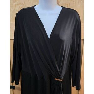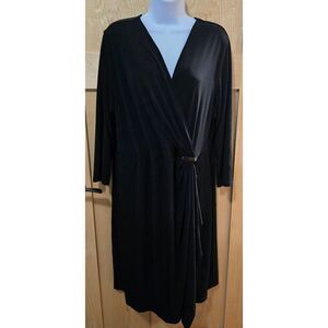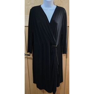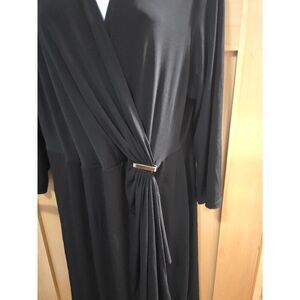 Black Wrap Dress With Gold Buckle Accent By Charter Club 3/4 Sleeves Flowy Fit S