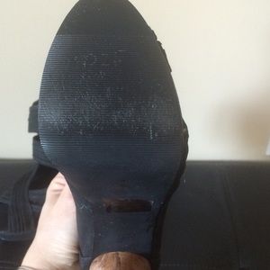 Gorgeous and fun black heels with a faux wood heel. 4 inch heel with a 1 1/2 inch platform. Super comfy and in fantastic condition