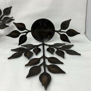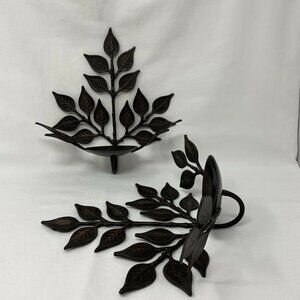 Black Wrought Iron Wall Hanging Leaves - Candle Holder (set of 2)
