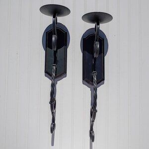 Black Wrought Iron Wall Sconce Pair Pillar Candle Holders Sconces Twisted Scroll