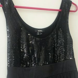 XOXO black dress with sequins on front top, tie back. Reasonable offers accepted.