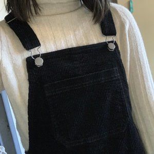 Black XS Corduroy Overall Mini Dress with Pockets