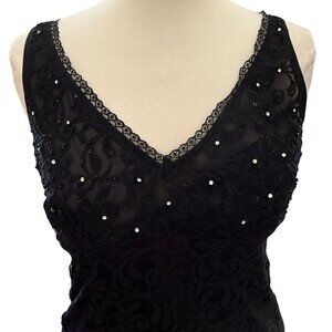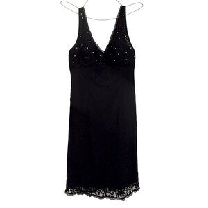 Black Y2K Sleeveless Formal Dress Sequin Lace Bodice Babydoll V Neck & Back 8