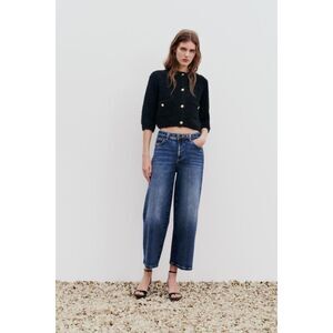 Black Zara Boucle Gold Button Front Round Neck Knit Cardigan Sweater (NWT)